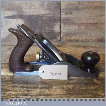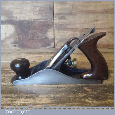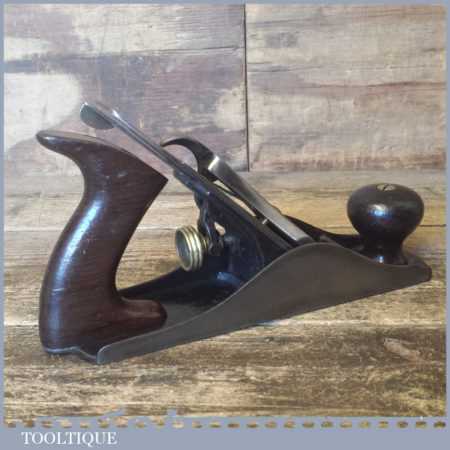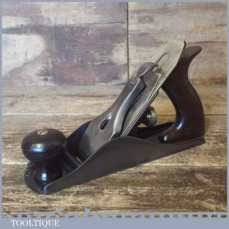 Early vintage Stanley USA No: 4 low knob smoothing plane with rosewood handles, fully refurbished ready to use and in good used condition. Note: Fitted with later Stanley, England iron.