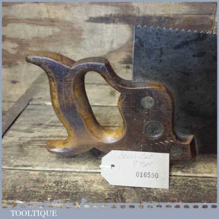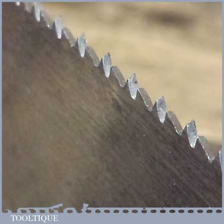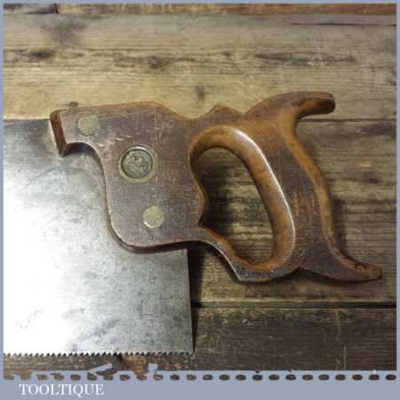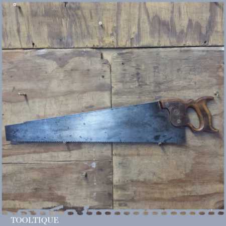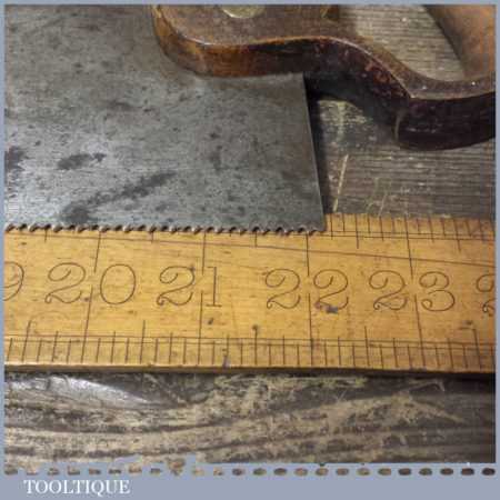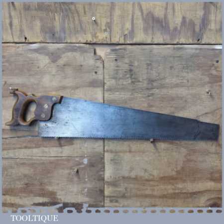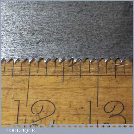 The saw has been thoroughly cleaned, jointed, resharpened and set by hand so that all the hard work of getting an old vintage saw right has been undertaken. We do this so that the next sharpening is easier and no more than a quick freshen up would be required. Those who are familiar with sharpening will know this is no small job and requires skill, effort and time to achieve good results.