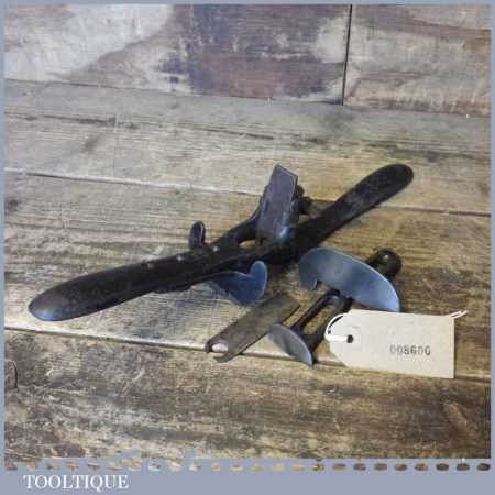 Vintage Edward Preston No: 1388 patent adjustable quirk router with two cutters and three guides, convex and flat in good used condition.
