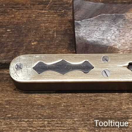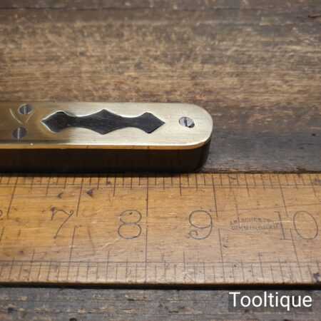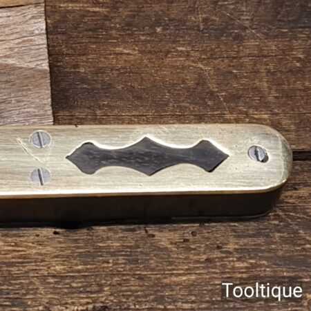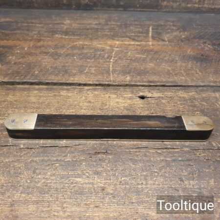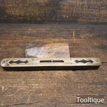 Elegant ornate antique 9” ebony and brass spirit level with clear bubble, in good used condition.
