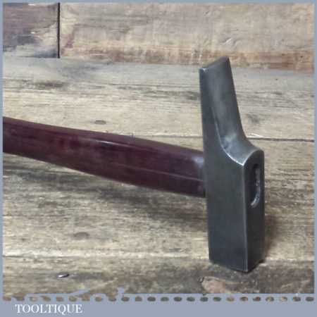 Elegant vintage bellota No: 3005 B cast steel cross pein hammer with mahogany handle in good used condition. Note: Split in the handle down the grain where the handle was wedged into the hammer head socket.