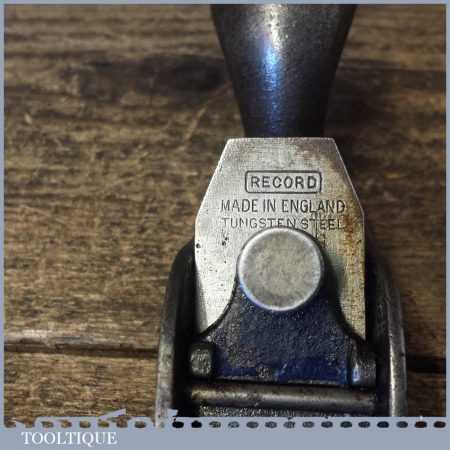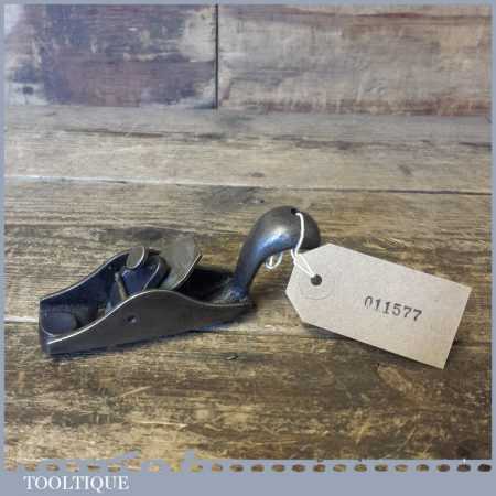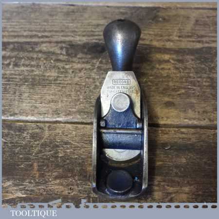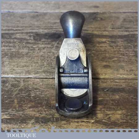 Extremely rare Record 0100 ½ model maker’s convex sole block plane. These are arguably one of the rarest Record planes ever manufactured for a short period before the war between 1938-43. The Record 0100 1/2 planes saw the shortest production runs of all of the Record planes and was only produced for about 2 years before World War II restrictions began and has the distinctive squirrel tail handle