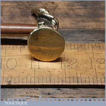 Interesting & Fine ornate lucky charm Leprechaun jeweller’s brass repousse hammer with decorative turned rosewood handle in good used condition. This is more collectable and ornamental than useable I would say, but certainly different and made to a high quality. Note: The tiny Horse shoe.
