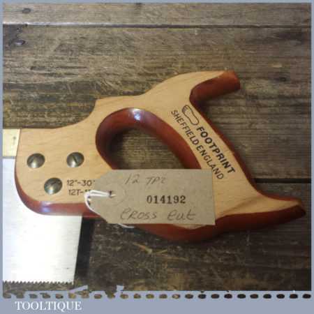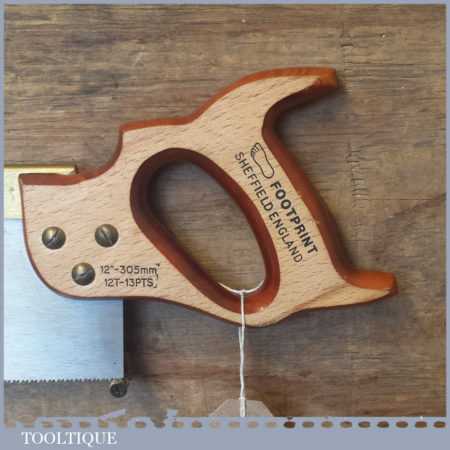 Footprint 12” brass back tenon saw with 12 tpi, fully refurbished and sharpened cross cut ready for use.