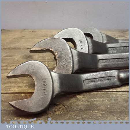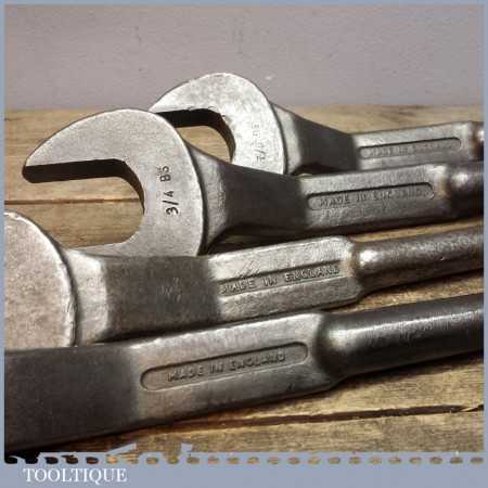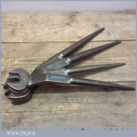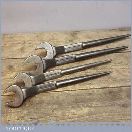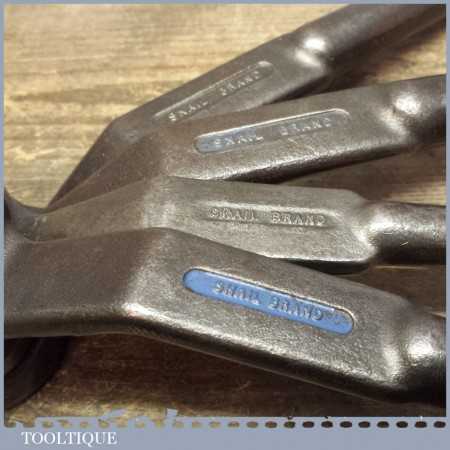Four vintage Snail Brand Podgers made in England. The sizes are as follows 5/8”BS ¾”BS 7/8”BS 11/16”BS. Podgers are used to Draw Bore holes together as well as tightening bolts and often used by steel erectors.