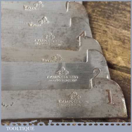 Full set of 8 No: vintage William Marples & Sons plough irons in good used condition.