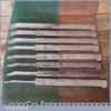 Full set of 8 No: vintage W. Marples & Sons plough irons in green baize roll, in good used condition.