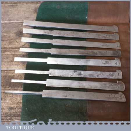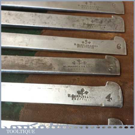 Full set of 8 No: vintage W. Marples & Sons plough irons in green baize roll, in good used condition.