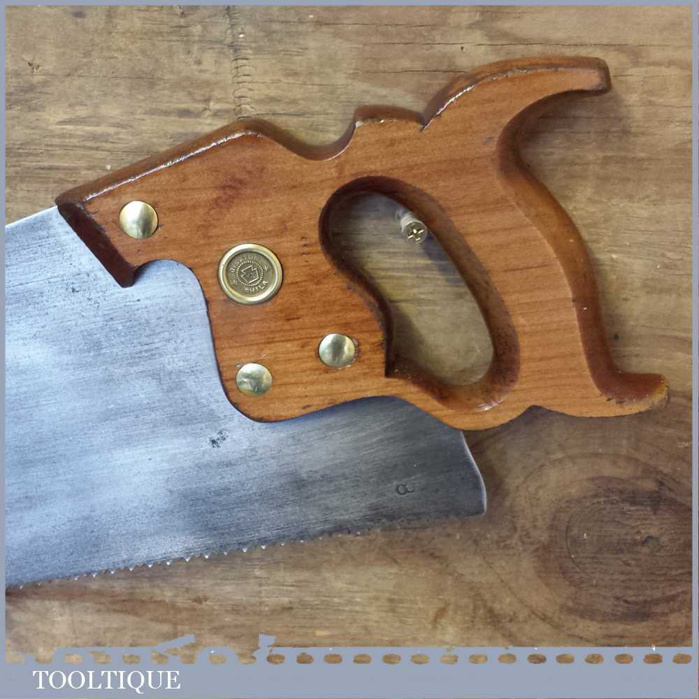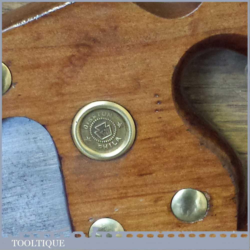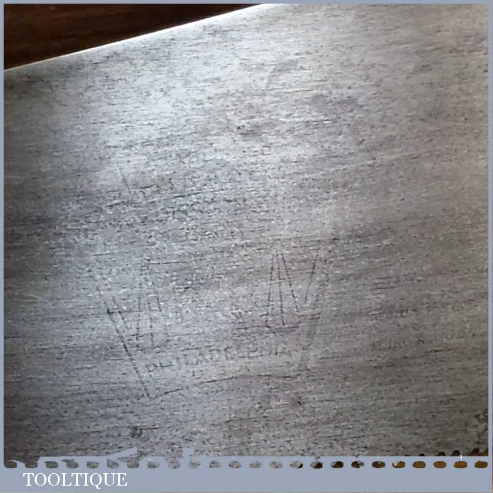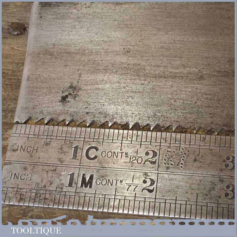 Genuine Henry Disston D7 Philadelphia 8 TPI cross cut saw sharpened & set ready for use. These saws are sort after and collectable but as I see it these are exceptionally good value for craftsmen purchase and use given their superior quality. These saws were often regarded these as the best saws ever produced and have a deserved legendary status in the old tool market. The saw tooth line has been straightened whilst the teeth have been sharpened and set with care making it easier to re-sharpen it again in the future.