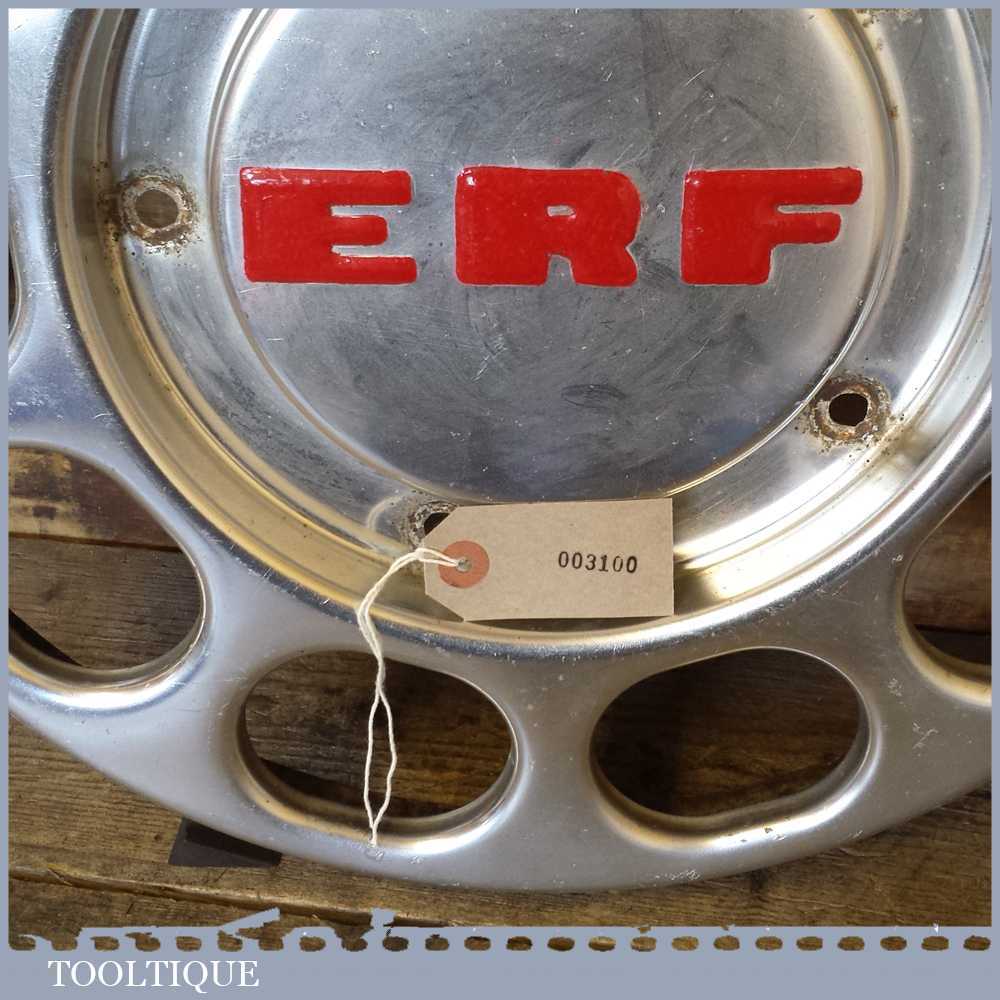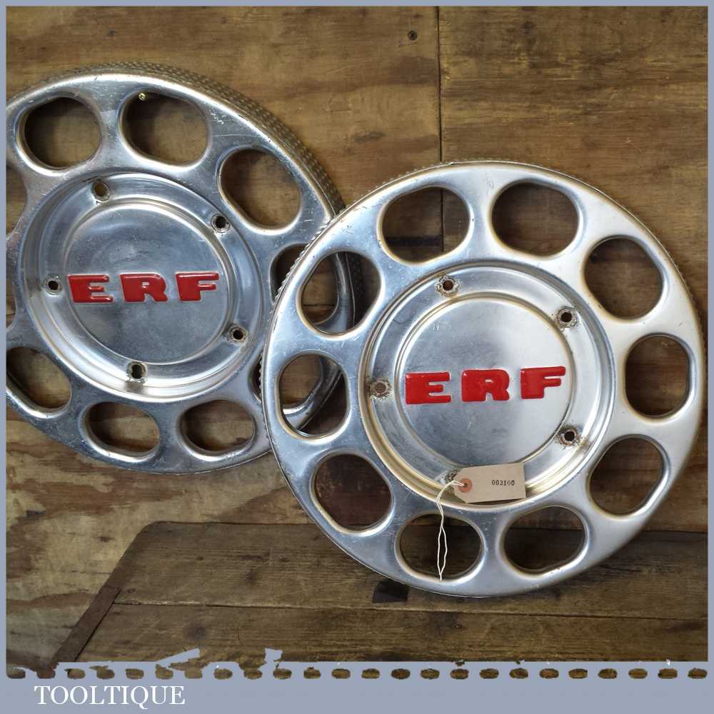 Genuine Pair of ERF metal 10 stud truck wheel trims in good used condition, see images, measuring approx 17” in diameter.