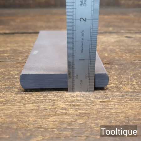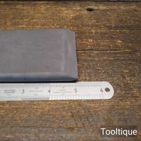 Good multi shaped faced natural Welsh purple slate slip honing stone with very fine grit properties. Measuring approx 5 ⅛”” in length and 2 ⅝” wide which feels comfortable in the hand and has a flat face on both sides, 3 sized circumferences arched edges, and one angled edge perfect for carving tools etc.