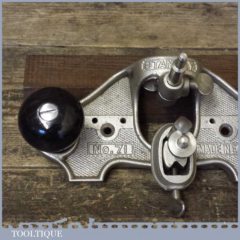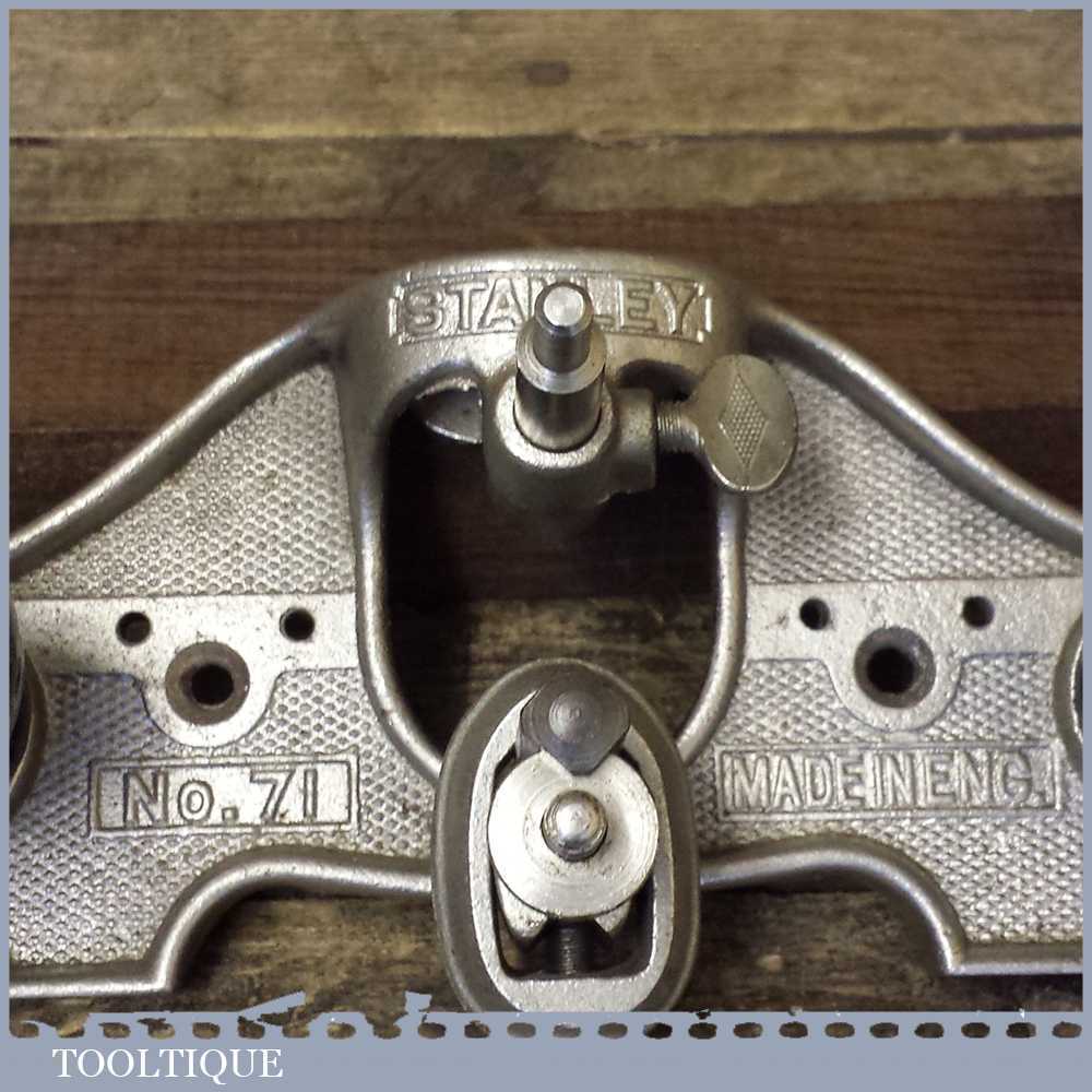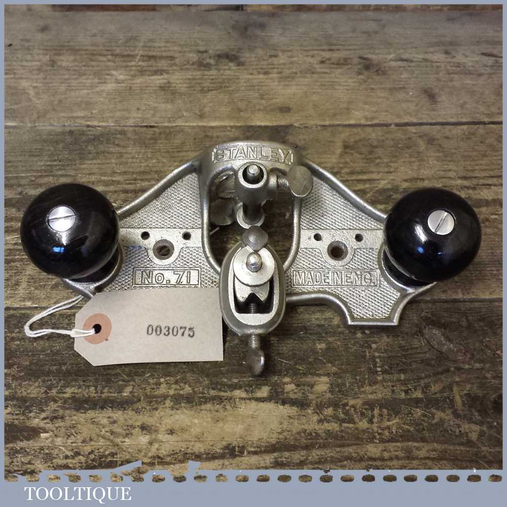 Good Stanley No: 71 hand router plane with 1 cutter and in good used condition. Note: there is no side fence with this plane.