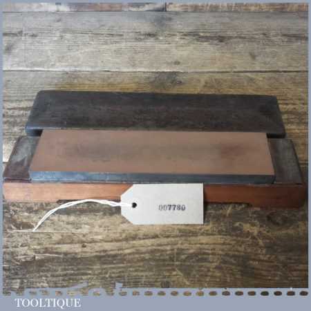 Good vintage 8” x 2″ fine oil stone in a nice mahogany box in good used condition.