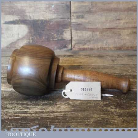 Handmade wood turned old lignum mallet with teak handle and ebony wedge. This mallet is approximately 2 lbs in weight and is finished with bee’s wax.