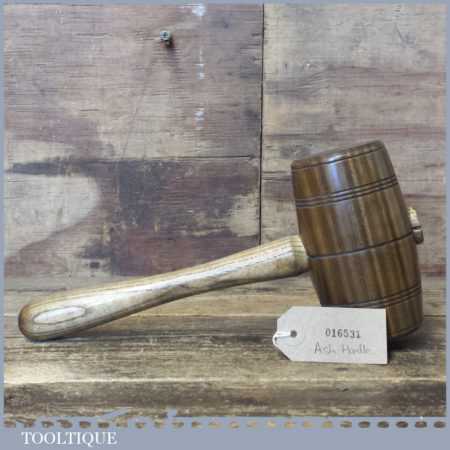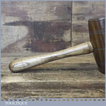 Handmade Saddlers leatherworking Lignum Vitae punching mallet with an Ash wood handle and boxwood wedge. These mallets have been individually hand turned for saddlers to be used in conjunction with metal punches, are approximately 2 lb in total weight.