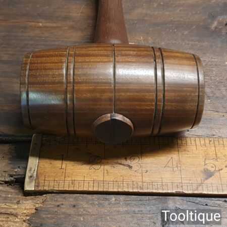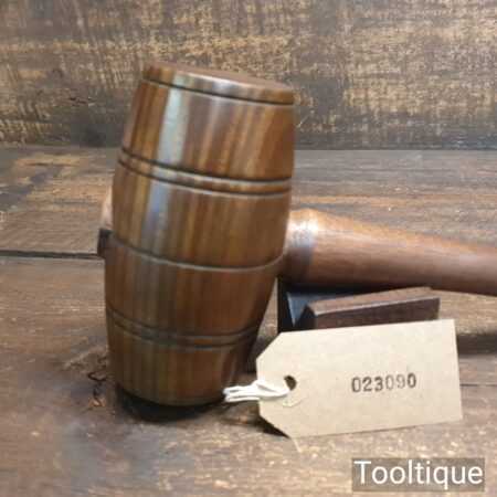 Multi-purpose Lignum Vitae barrel-shaped round-faced mallet with a beechwood handle and boxwood wedge. These mallets have been individually hand-turned, these are approximately 9oz in total weight.