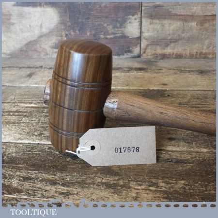 Handmade saddler’s leatherworking lignum vitae round faced punching mallet with a beechwood handle and boxwood wedge. These mallets have been individually hand turned for saddlers to be used in conjunction with metal punches, are approximately 9 oz in total weight.