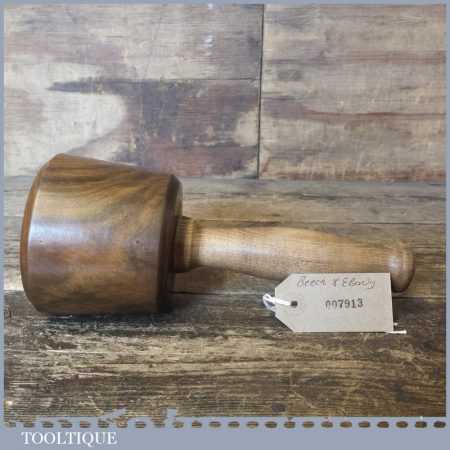 Handmade wood turned Mallet made with old lignum and a Beech wood handle with ebony wedge. This mallet is approximately 2 lbs in weight and is finished with bee’s wax.