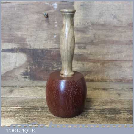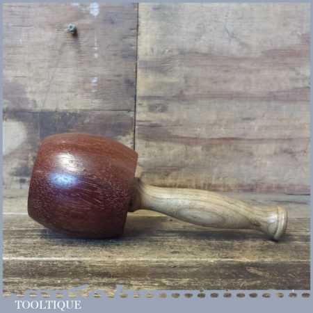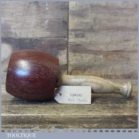 Handmade wood turned old Azobé (Ekki) hardwood mallet with an Ash wood handle and ebony wedge. These mallets have been individually hand turned for woodcarvers who would like a little less weight that comes with the mallets turned from lignum bowls and these are approximately 600-650 grams in total weight. Ekki is a very dense wood originating from Africa and being one of the few woods that will sink in water, it is also notoriously difficult to turn but as you can see was worth the effort. This is also known as red iron wood and is extremely tough and durable.