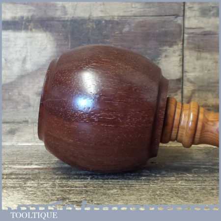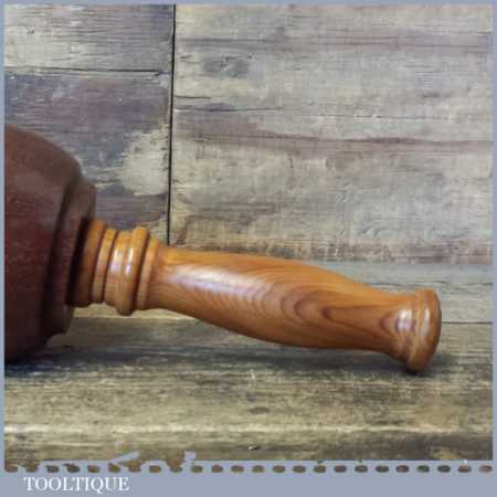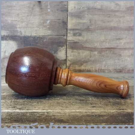 Handmade wood turned old Azobé (Ekki) hardwood mallet with yew handle and boxwood wedge. These mallets have been individually hand turned for woodcarvers who would like a little less weight than mallets turned from lignum bowls and these are approximately 600-650 grams in total weight. Ekki is a very dense wood originating from Africa and being one of the few woods that will sink in water, it is also notoriously difficult to turn but as you can see was worth the effort. This is also known as red iron wood and is extremely tough and durable.