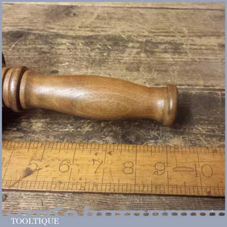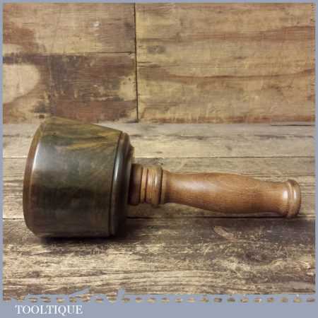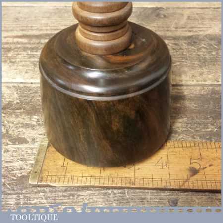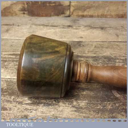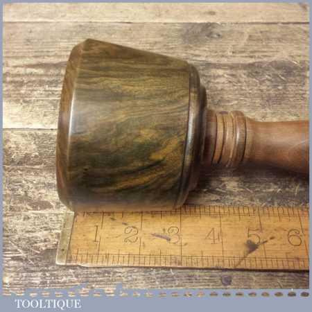 These have been polished so they have an extremely smooth finish and polished with bees wax. These are made with a one piece handle which continues through to the opposite end of the mallet head. These feel very good in the hand and have some good weight to them approx 2 lbs. These are made from old lignum crown bowls which ensures they are well seasoned but more importantly comes from the region where the densest lignum could be found before being exhausted. The lesser dense Argentinean lignum took over the market after that and again this is all but gone as it takes so long to grow.