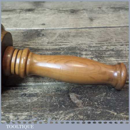 Handmade wood turned old lignum mallet with yew handle and boxwood wedge. This mallet is approximately 2 lbs in weight and is finished with bee’s wax.