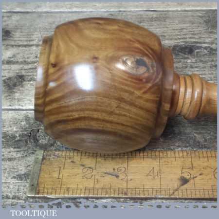 These have been polished so they have an extremely smooth finish and polished with bees wax. These are made with a one piece handle which continues through to the opposite end of the mallet head. These feel very good in the hand and have some good weight to them approx 2 lbs. These are made from old lignum crown bowls which ensures they are well seasoned but more importantly comes from the region where the densest lignum could be found before being exhausted. The lesser dense Argentinean lignum took over the market after that and again this is all but gone as it takes so long to grow.