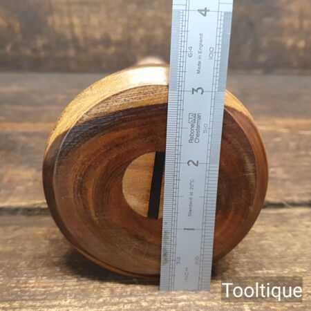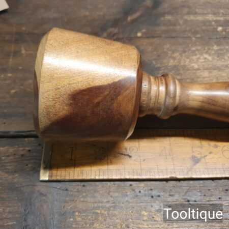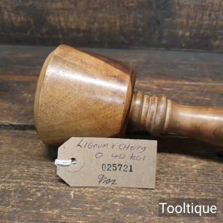 Handmade wood turned reclaimed old lignum vitae mallet with London plane handle and cherry wedge. This mallet weighs 20 oz and is finished with bee’s wax.