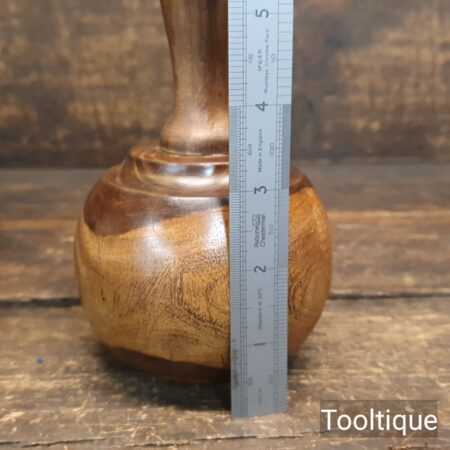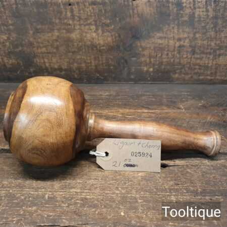Handmade wood turned reclaimed old lignum vitae mallet with a Cherry wood handle and ebony wedge. The mallet weighs approx 21 oz and has super graining is finished with bee’s wax.