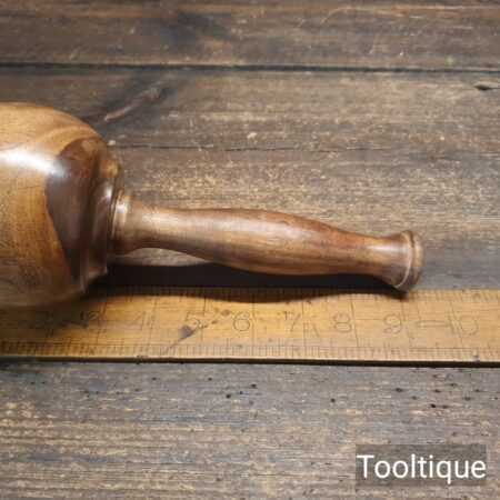 These mallets are made with a one-piece handle that continues through to the opposite end of the mallet head and feels very good in the hand. Made from old lignum crown bowls ensures they are well seasoned but more importantly comes from the region where the densest lignum could be found before being exhausted. The lesser dense Argentinean lignum took over the market after that and again this is all but gone as it takes so long to grow.