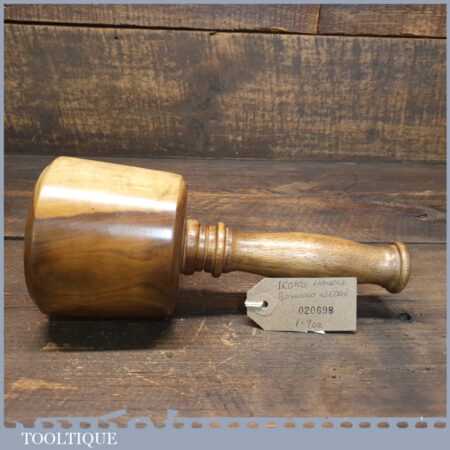 These mallets are made with a one-piece handle which continues through to the opposite end of the mallet head and feel very good in the hand. Made from old lignum crown bowls ensures they are well seasoned but more importantly coms from the region where the densest lignum could be found before being exhausted. The lesser dense Argentinean lignum took over the market after that and again this is all but gone as it takes so long to grow.