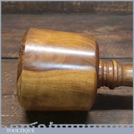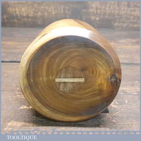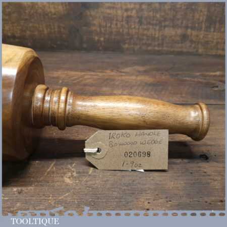 Handmade wood turned reclaimed old lignum vitae mallet with iroko handle and boxwood wedge. This mallet weighs 1lb 9oz and is finished with bee’s wax. Note: This has wonderful figuring in the lignum which isn’t a common feature from crown bowls and adds extra beauty to the mallet