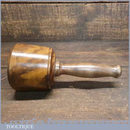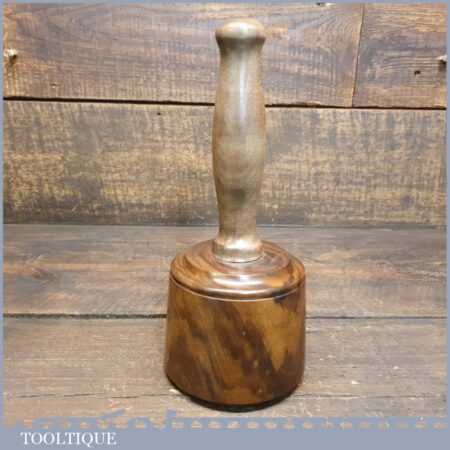 Handmade wood turned reclaimed old lignum vitae mallet with London plane handle and ebony wedge. This mallet weighs 2lb 0oz and is finished with bee’s wax. Nice figuring in the lignum head.