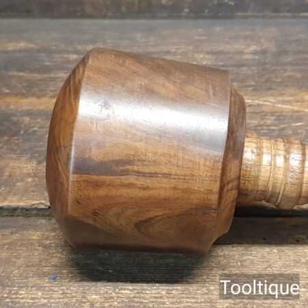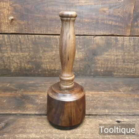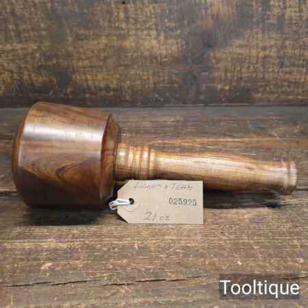 Handmade wood turned reclaimed old lignum vitae mallet with London plane handle and ebony wedge. This mallet weighs approx 21 oz and is finished with bee’s wax.