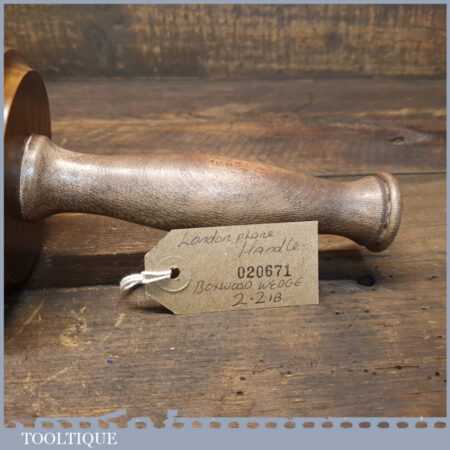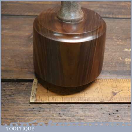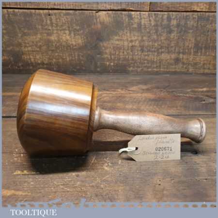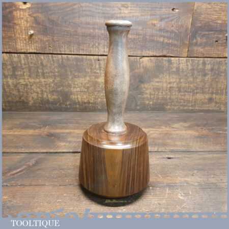 Handmade wood turned reclaimed old lignum vitae mallet with London plane handle and boxwood wedge. This mallet weighs 2lb 2oz and is finished with bee’s wax.