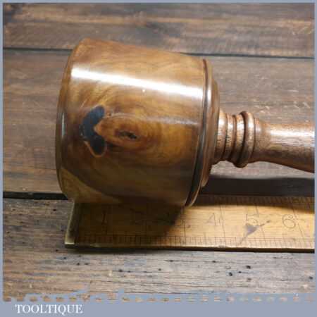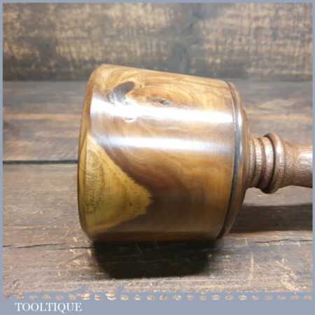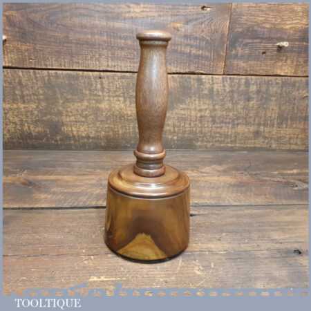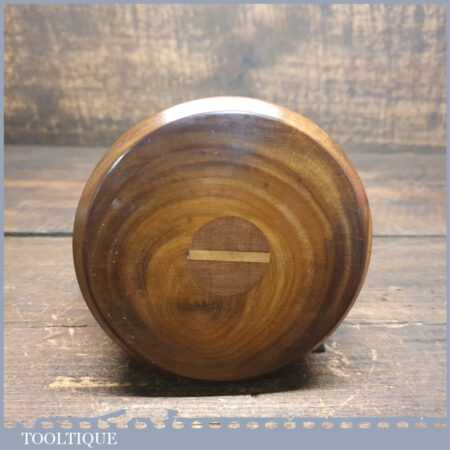 Handmade wood turned reclaimed old lignum vitae mallet with mahogany handle and boxwood wedge. This mallet weighs 1lb 9oz and is finished with bee’s wax. Note: This has wonderful figuring in the lignum which isn’t a common feature from crown bowls and adds extra beauty to the mallet.
