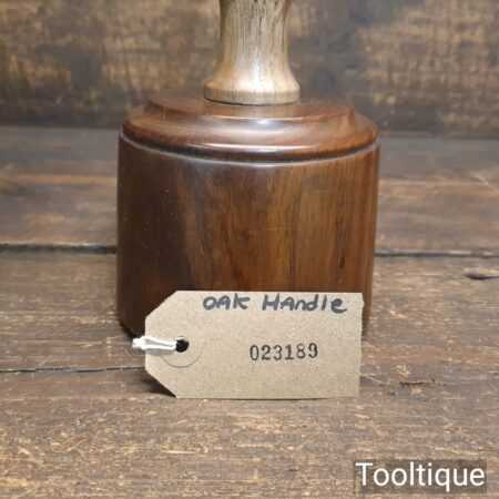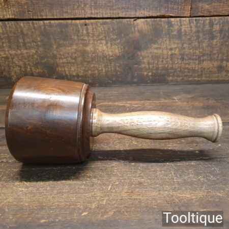 Handmade wood turned reclaimed old lignum vitae mallet with oak handle and ebony wedge. This mallet weighs 2lb 1oz and is finished with bee’s wax.