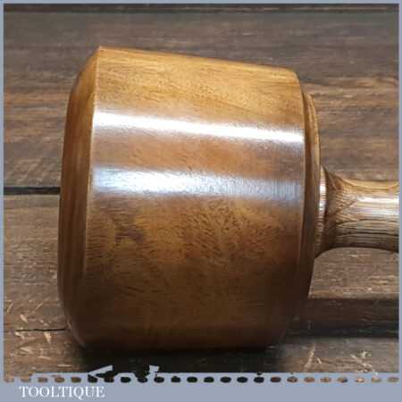 Handmade wood turned reclaimed old lignum vitae mallet with oak handle and ebony wedge. This mallet weighs 2lb and is finished with bee’s wax.