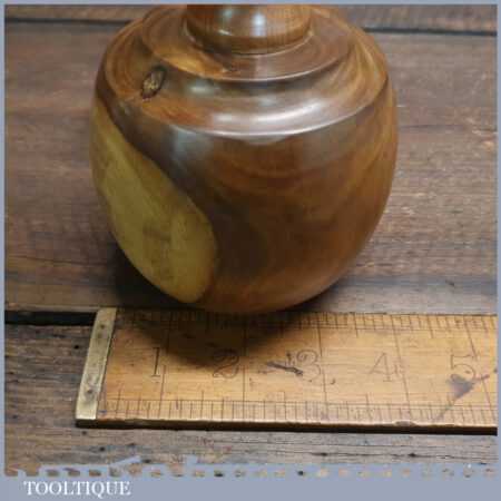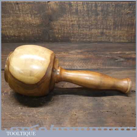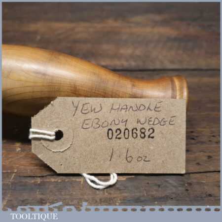 Handmade wood turned reclaimed old lignum vitae mallet with yew handle and ebony wedge. This mallet weighs 1lb 6oz and is finished with bee’s wax. Note: This has wonderful figuring in the lignum which isn’t a common feature from crown bowls and adds extra beauty to the mallet