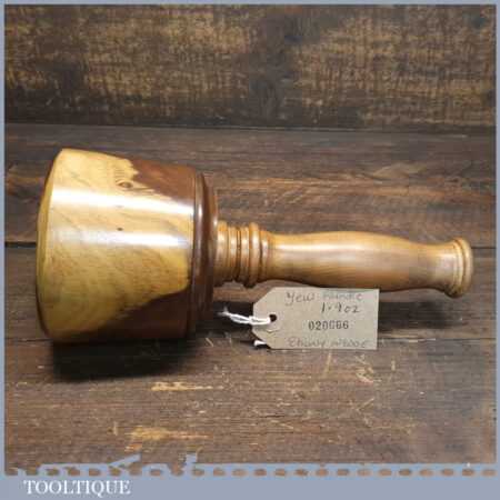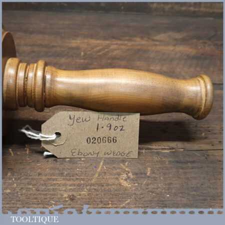 Handmade wood turned reclaimed old lignum vitae mallet with yew handle and ebony wedge. This mallet weighs 1lb 9oz and is finished with bee’s wax. Note: This has wonderful figuring in the lignum which isn’t a common feature from crown bowls and adds extra beauty to the mallet.