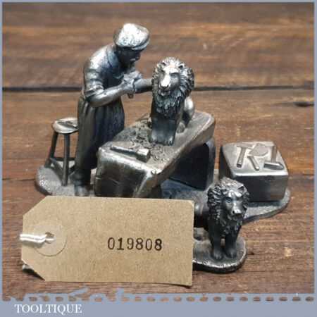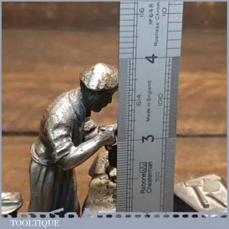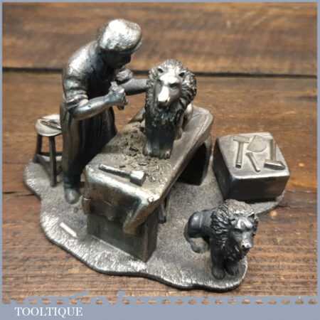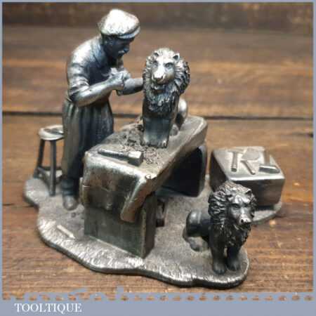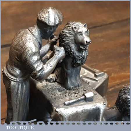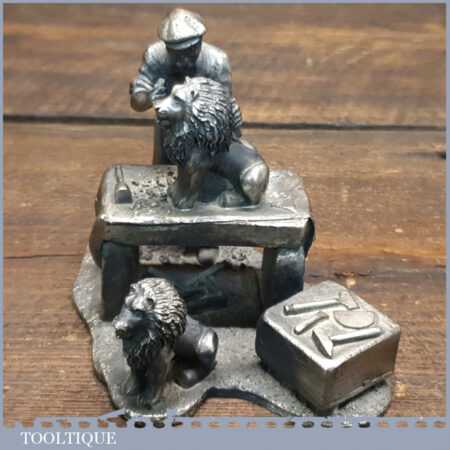 Heavy Evergreen ornament of stonemason at work carving lions c1960’s in good condition.