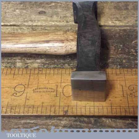 High Quality vintage silversmiths double faced planishing hammer with wooden handle, in good used condition. These produce a sweet ringing sound then tapping them which suggests they are hardened to a different degree to avoid the ends from deforming so easily.