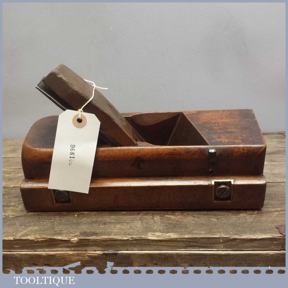 Huge Antique Varvill and Sons of York 19th Century panel raising plane which was more than likely a special order and certainly rare. The plane sole measures 10” long and 4” wide plus the added width of the depth stop. I have now freed up the fence adjustment screws which were seized apart from one that had been broken and it is shorter than the rest, this screw does however tighten up but care would be needed as to not breaking any remaining thread. Sold as a collectable item.