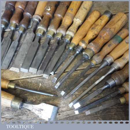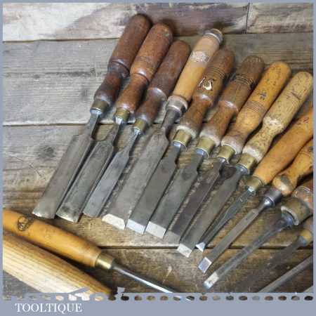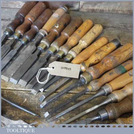 Joblot of 19 No: vintage carpenters woodworking chisels in various sizes.