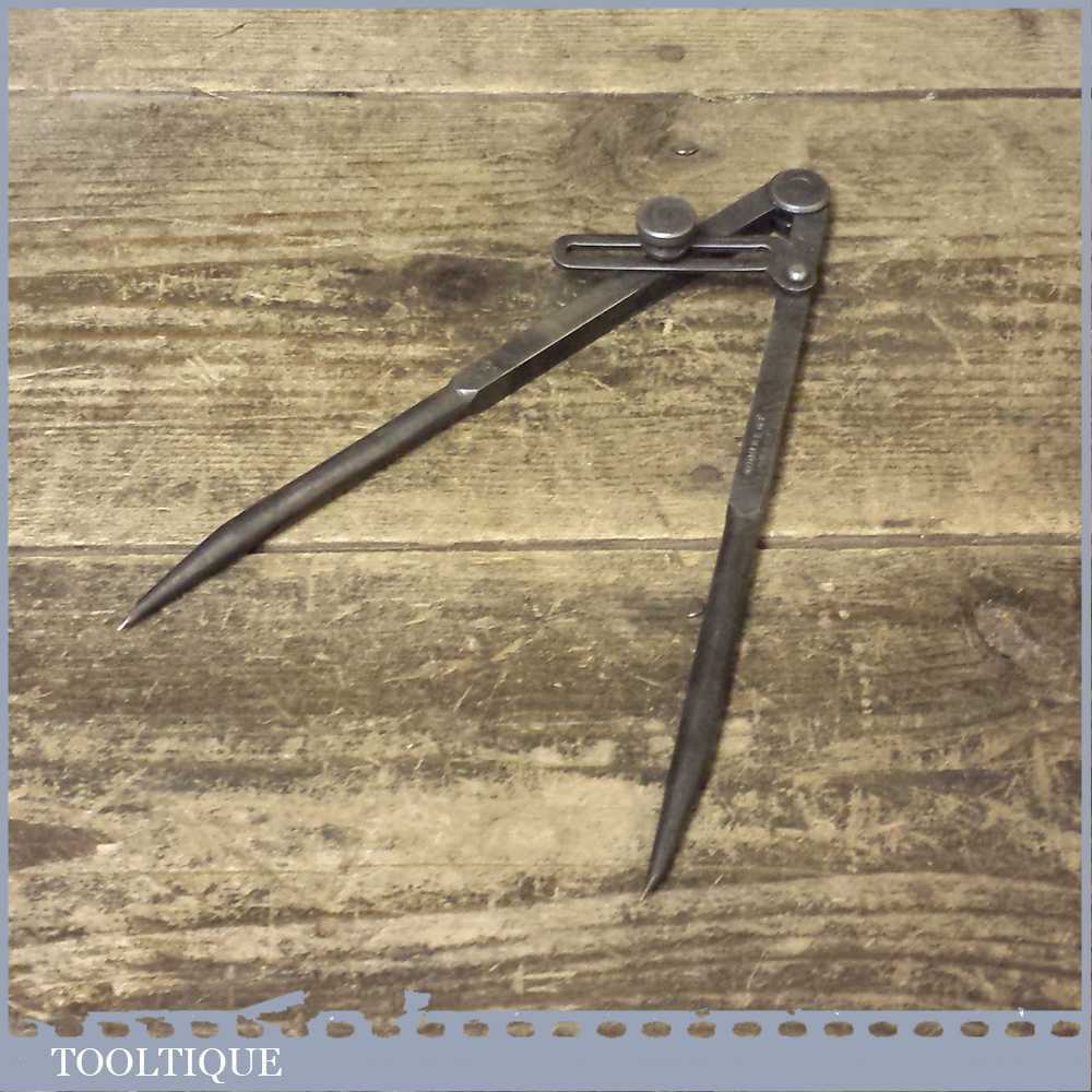 Large 18” Vintage pair of Ministry (65) steel dog leg dividers by Monument in good used condition.