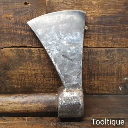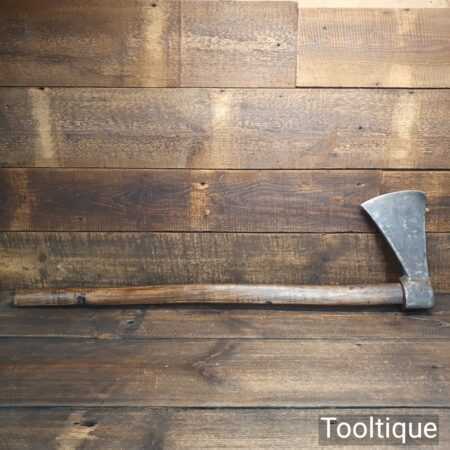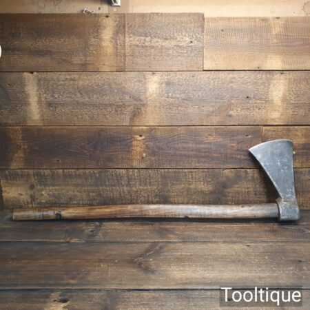 Large antique continental axe sharpened and honed with rustic handmade handle. Note: old worm holes in the handle and would probably need changing if intended for use