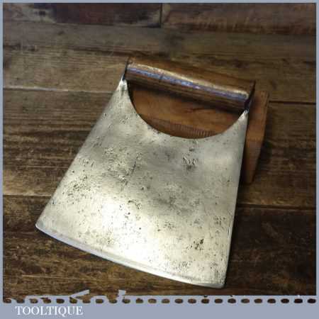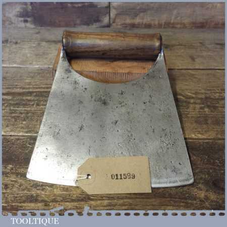 Large Antique kitchenalia laminated steel chef’s mincing knife herb cutter in good used condition. This is approx 6” wide and 7 ½” in height and a meaty old cutter! Note: The handle has been lacquered & sealed and it is very sharp if intended for use.