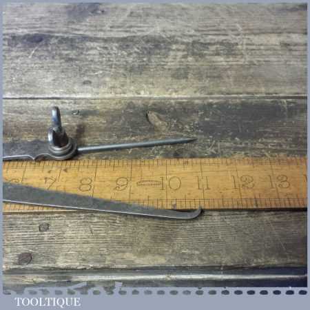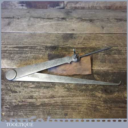 Large attractive vintage pair of 11” odd leg dividers stamped S. Squires, refurbished and in good used condition. These are quite unusual and very good quality.