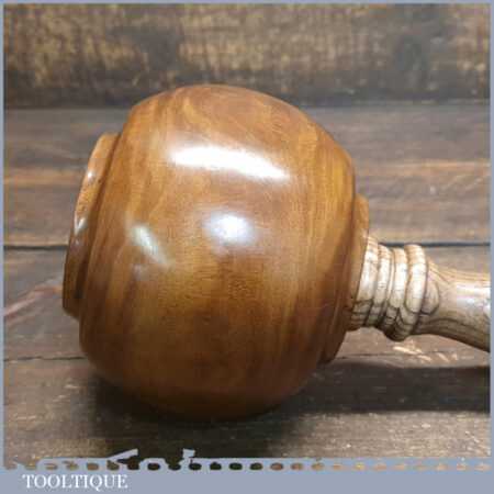 Large handmade wood turned reclaimed old lignum vitae mallet with ash handle and ebony wedge. This mallet weighs 2lb 6oz and is finished with bee’s wax.