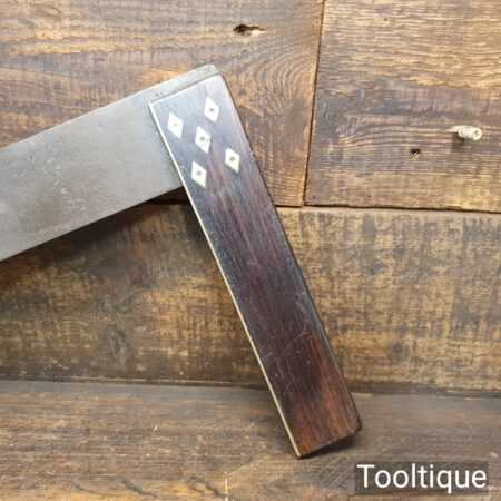Large vintage 18″ rosewood and brass try square in good used condition. Note: Makers mark slightly visible but hard to distinguish. Tested Square.